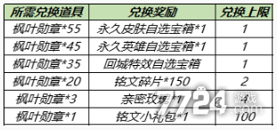 你要是想要使用枫叶勋章来进行兑换永久皮肤的话,则你就需要先将枫叶勋章获得55个,之后你就可以使用55个枫叶勋章来进行兑换1个永久皮肤自选宝箱。
